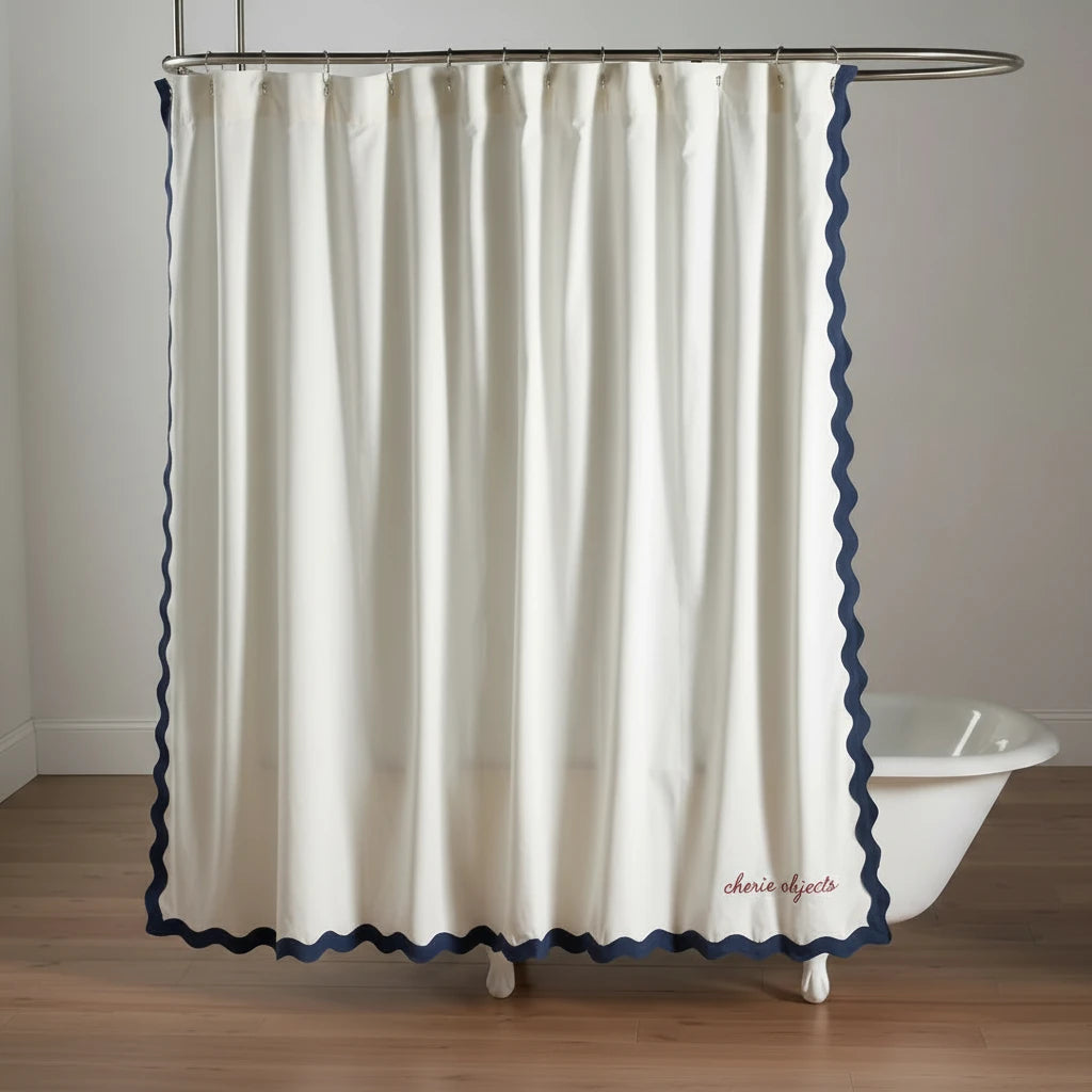Turn the bathroom into a softly curated space with the CHERIE OBJECTS Embroidered Scalloped Cotton Shower Curtain. Crafted from natural cotton and finished with delicate embroidery and a scalloped edge, this shower curtain adds warmth, texture, and a subtle decorative rhythm — transforming an everyday essential into a refined interior element.