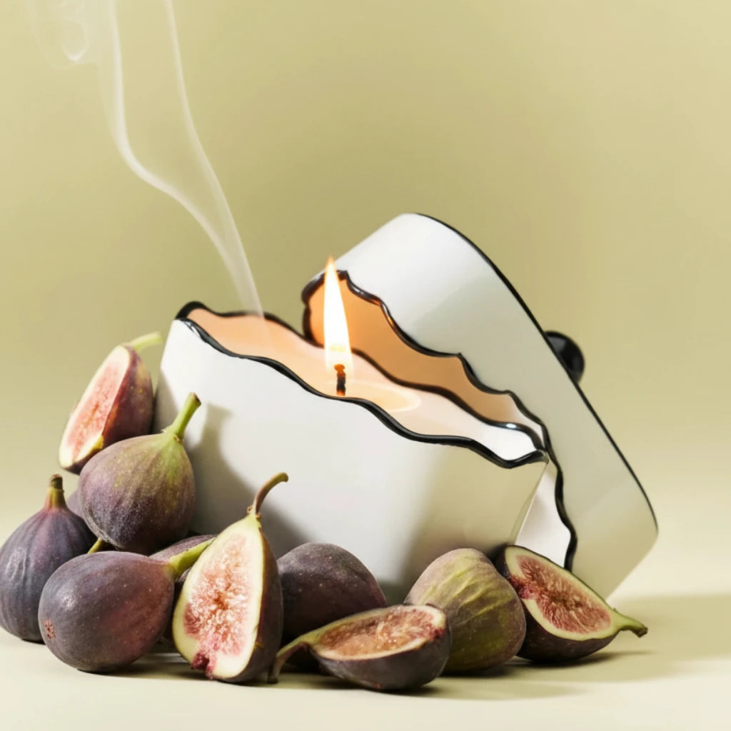 The CHERIE OBJECTS Floral Porcelain Candle blends scent and form into a refined everyday ritual. Housed in a decorative porcelain vessel with a matching lid, it features the Black Fig & Olive fragrance — a balanced composition that feels warm, green, and quietly elegant. Designed to be enjoyed both lit and unlit, it brings atmosphere and visual calm to the space.