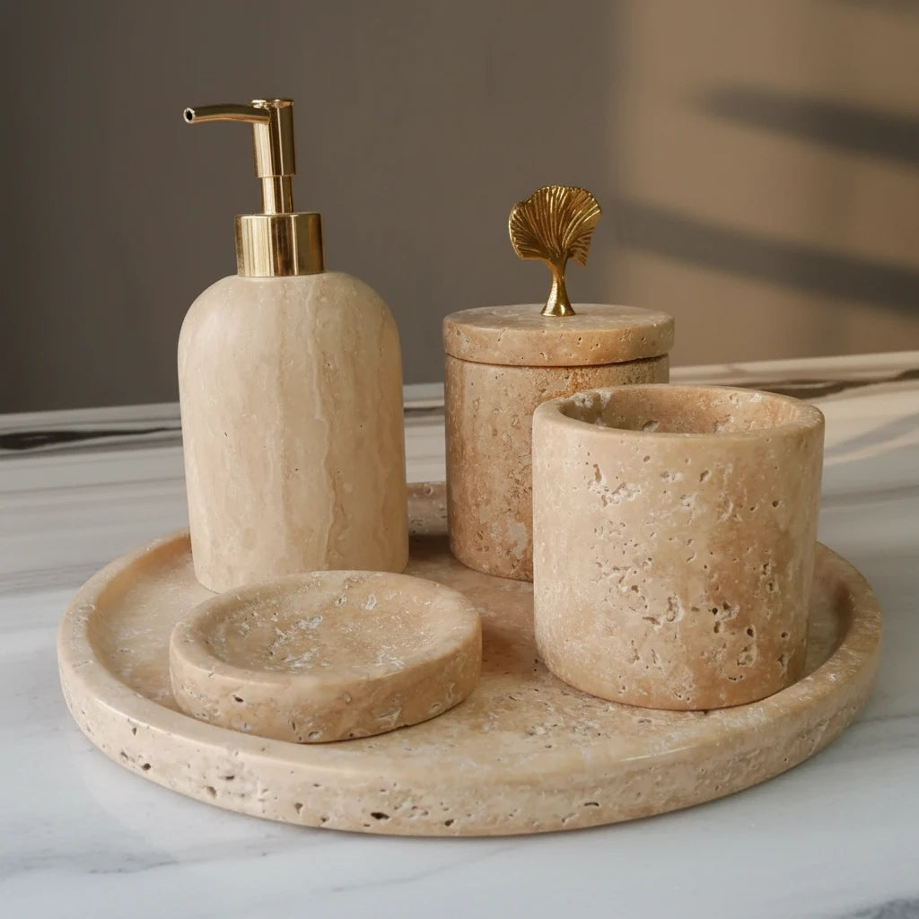 - Natural stone bathroom accessory set (7 pieces)