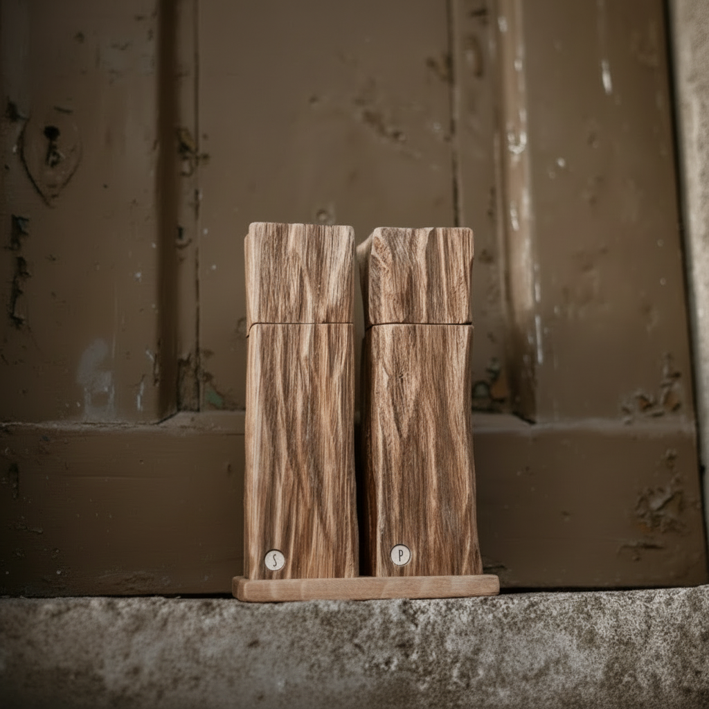 Oak Wood Salt & Pepper Mill Set – Handcrafted Rustic Spice Grinders